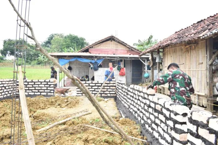 SUMENEP, 27 Februari 2026 – Dengan program TNI Manunggal Membangun Desa (TMMD) ke-127 Kodim 0827/Sumenep, rumah milik Sami di Dusun Karang, Desa Mandala, Kecamatan Rubaru yang sebelumnya berdinding anyaman bambu kini mulai berdiri gedung kokoh dengan pasangan batu bata.