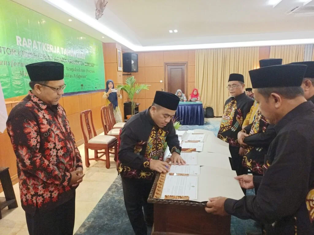 SUMENEP, 7 Februari 2026 – Kementerian Agama Kabupaten Sumenep menggelar Rapat Kerja (Raker) dan penandatanganan Perjanjian Kinerja (Perkin) tahun 2026 dengan tema “Transformasi Berkelanjutan, Mengakselerasi Program, Memperkuat Akuntabilitas Pelaporan.”
